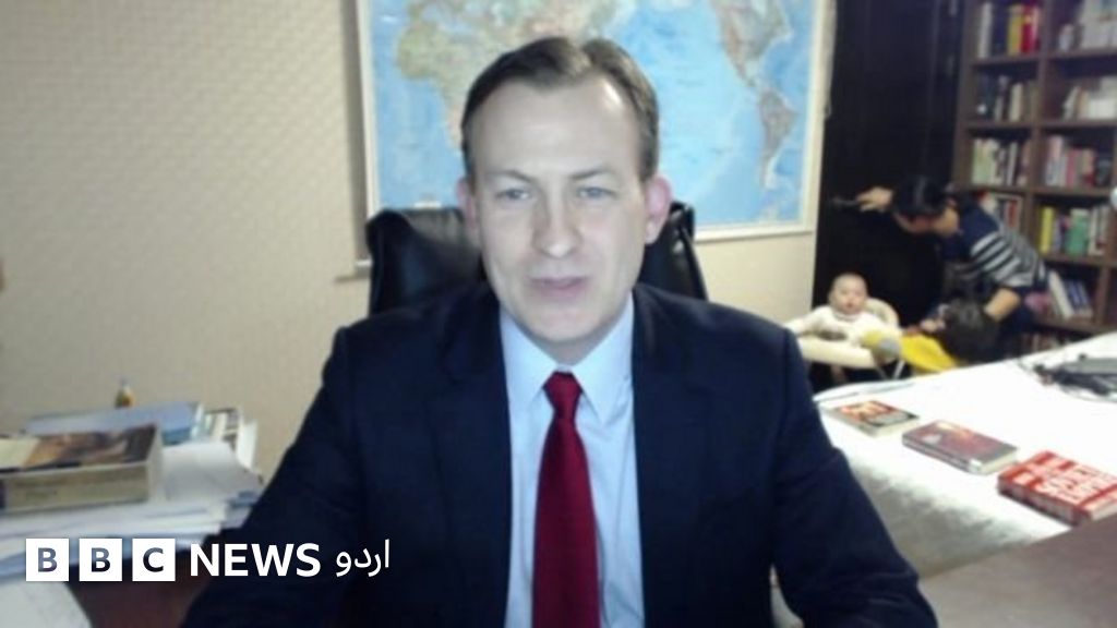 انٹرویو میں انٹرنیشنل ریلیشنز کے پروفیسر رابرٹ کیلی جنوبی کوریا کے بارے میں باتیں کر رہے تھے۔ اسی دوران ان کے دو ننھے منے بچے وہاں آ گئے جسے ان کی اہلیہ نے وہاں سے ہٹایا۔