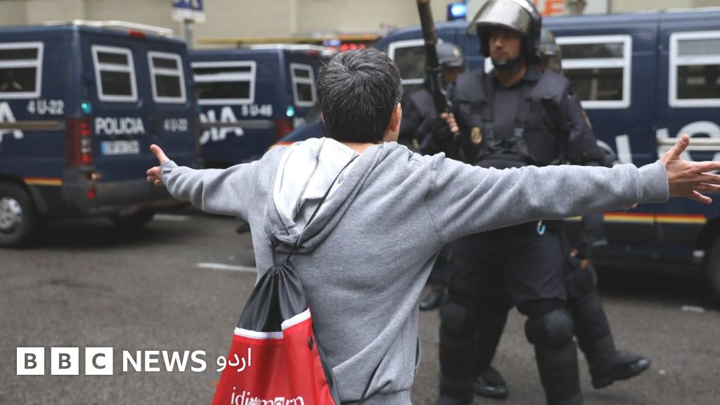 پولیس ووٹروں کو بارسلونا کے پولنگ سٹیشنوں میں داخلے سے روک رہی ہے۔