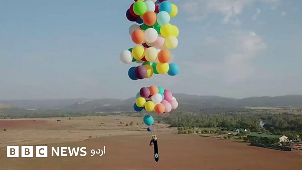 ایک برطانوی مہم جو نے جنوبی افریقہ میں 25 کلو میٹر کا سفر سو ہیلیئم گیس سے بھرے غباروں کے ساتھ لٹک کر اڑتے ہوئے طے کیا۔