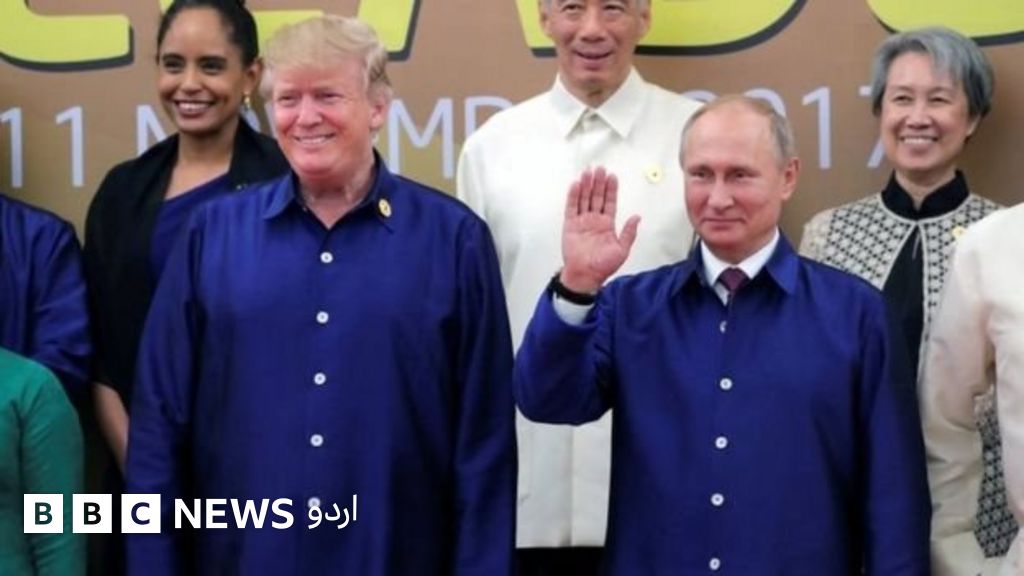 صدر پوتن اور ڈونلڈ ٹرمپ کو جمعے کو سربراہی کانفرنس کے لیے بنائی گئی مخصوص نیلی شرٹ میں دیکھا جا سکتا ہے۔ انھوں نے سنیچر کو بات چیت کے لیے بیٹھنے سے پہلے ایک دوسرے سے مصافحہ بھی کیا اور بعد میں جب گروپ تصویر لی جا رہی تھی تو ایک دوسرے سے مختصر بات کرتے ہوئے بھی نظر آئے۔