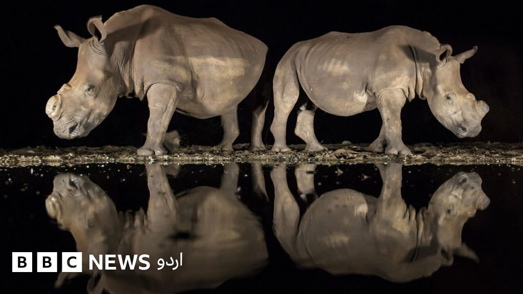 اس کیٹیگری میں تیسرا انعام جنوبی افریقہ میں اتاری گئی الیسن لانگ ایوود کی دو سفید گینڈوں کی تصویر کو دیا گیا۔ ’زیمانگا گیم ریزرو کے ایک نالے پر رات کو دو سفید گینڈے اندھیرے سے نکل کر پانی پینے آئے۔ انھوں نے پانی پینے سے پہلے دونوں اطراف دیکھا اور پھر نالے میں سر جھکا لیا۔‘