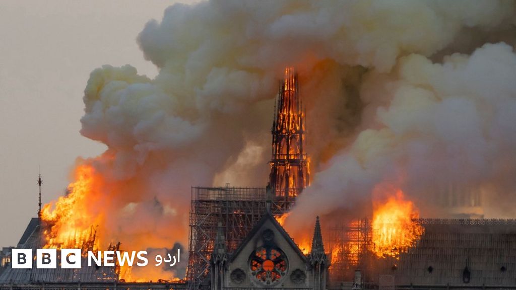 شدید آگ کی لپیٹ میں آنے کی وجہ سے پیرس کے اس تاریخی گرجا گھر کی چھت اور مخروطی چوٹی گر گئی تھی۔