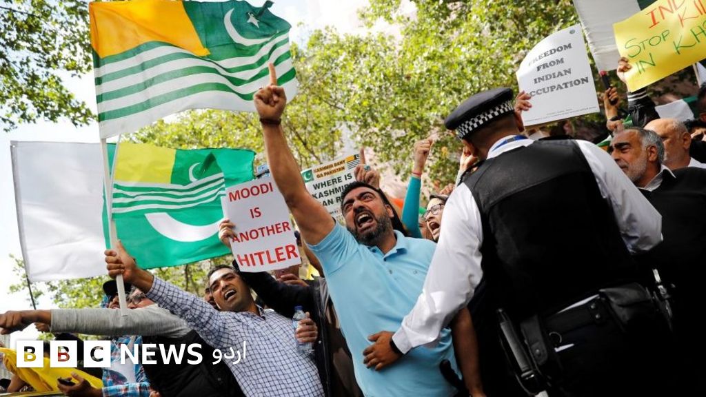 جہاں انڈیا کے زیر انتظام کشمیر کا رابطہ دنیا سے کٹا ہوا ہے وہیں بیرونی دنیا میں کشمیر سے متعلق نئے فیصلے پر احتجاج ہو رہا ہے۔ لندن میں بھی انڈین ہائی کمیشن کے سامنے مظاہرین موجود ہیں۔