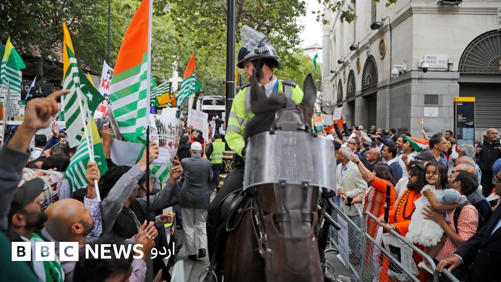 انڈین حکومت کی طرف سے ریاست جموں کشمیر کی خصوصی حیثیت ختم کرنے کے اعلان کے خلاف جمعرات کے روز لندن میں انڈین ہائی کمیشن کے سامنے ایک بڑا مظاہرہ ہوا۔