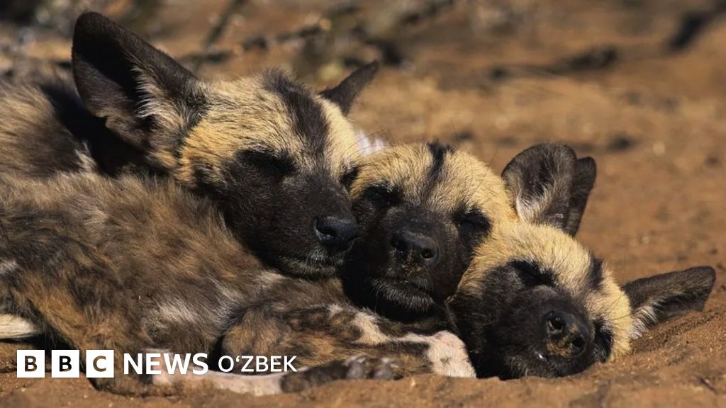 Сурат тагсўзи, Африка итлари болалари бирга уҳлашяпти. Бу жонзотлар - энг кўп йўқолиб кетиш хавфи остидаги турлардан.