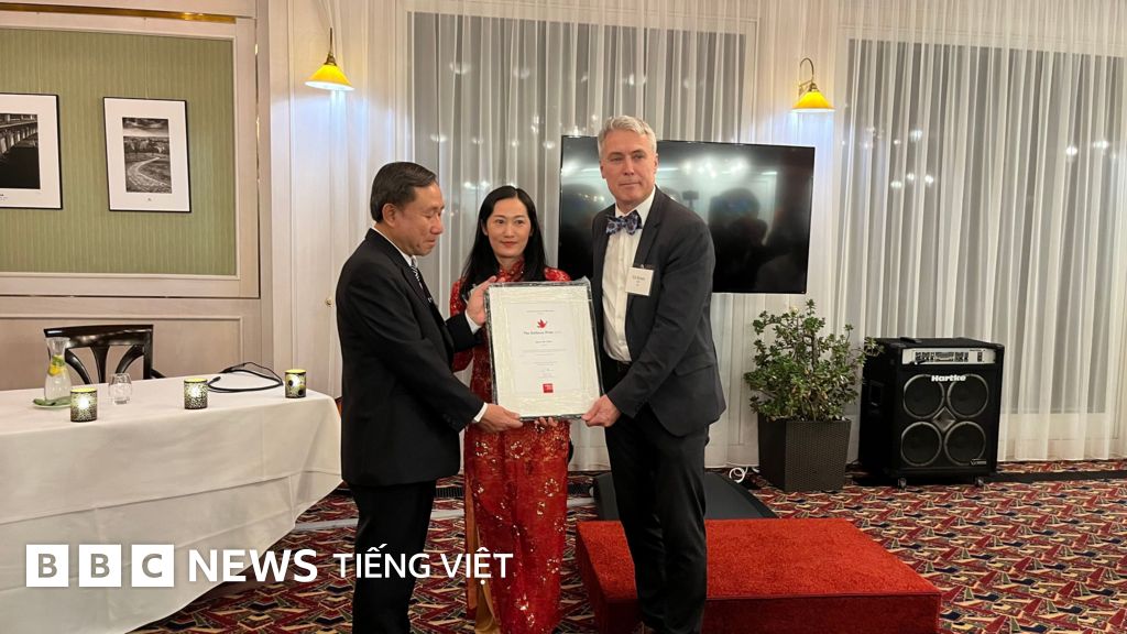 Chụp lại hình ảnh, Ông Nguyễn Bắc Truyển, cùng vợ, nhận giải thưởng nhân quyền từ Liên minh quốc tế Stefanus tại Praha, Séc, tháng 12/2023