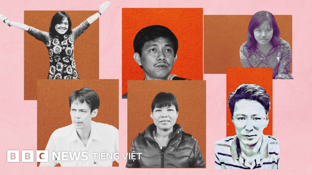 Chụp lại hình ảnh, Các nhà hoạt động nhân quyền và blogger hiện đang bị chính quyền Việt Nam giam giữ. Hàng trên từ trái sang phải: Hoàng Thị Minh Hồng, Trần Huỳnh Duy Thức, Phạm Đoan Trang. Hàng dưới: Phạm Chí Dũng, Cấn Thị Thêu, Nguyễn Lân Thắng
