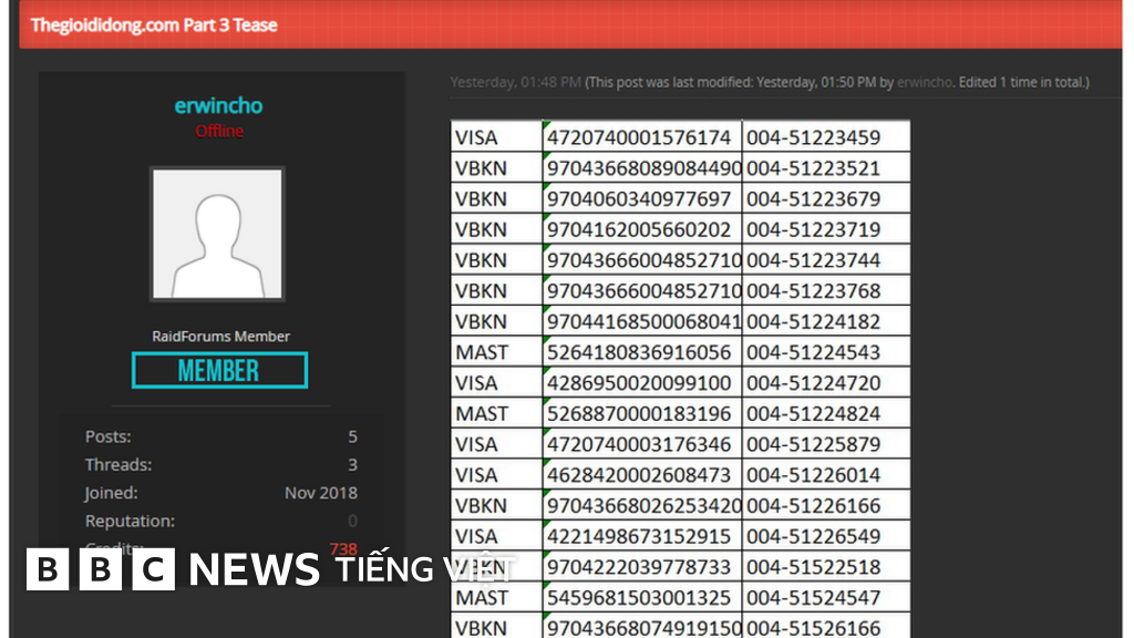 Dù vậy, cộng đồng mạng Việt Nam vẫn chia sẻ nhiều lo lắng về việc, thông tin email, lịch sử giao dịch và số thẻ tín dụng giao dịch với TGDĐ trong khoảng thời gian tháng 6/2016 đã bị lộ vào đầu tháng 11, theo tìm hiểu của BBC Tiếng Việt.
