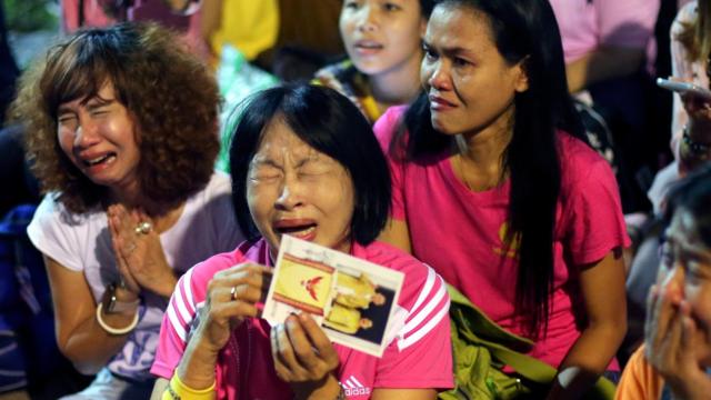 Tại khu vực gần Erawan, trung tâm Bangkok, từ hồi khoảng 19:00, rất nhiều người Thái, chủ yếu là phụ nữ, ngồi trên lề đường ôm mặt khóc nức nở. Chúng tôi lại gần và họ chia sẻ đây là “nỗi đau quá lớn”.