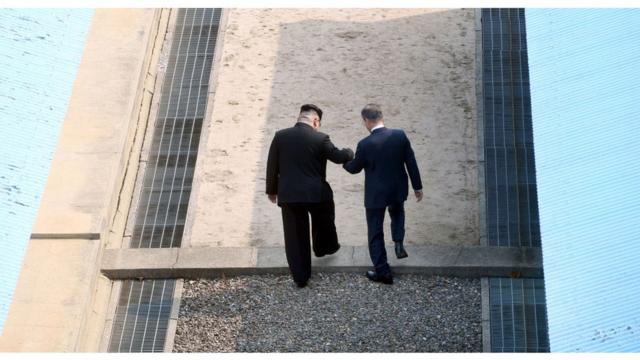 Viết cho cơ quan thông tấn Yonhap của Hàn Quốc, bài tường trình của ký gỉa Song Sang-ho nói rằng Chủ tịch Kim Jong-un làm "mờ nhạt đường chia cắt" hai miền đất nước kéo dài nhiều thập niên bằng cách nắm tay mời Tổng thống Moon Jae-in vượt qua biên giới.