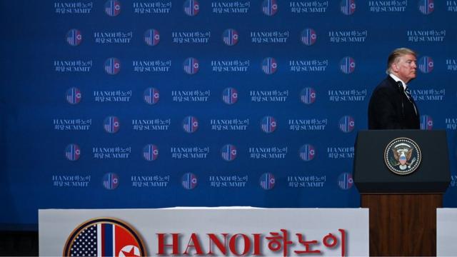 Donald Trump đã có một cuộc họp sau khi các cuộc đàm phán với Triều Tiên đã kết thúc sớm hơn hai giờ so với lịch trình và không đạt được đồng thuận về một tuyên bố hòa bình nào.