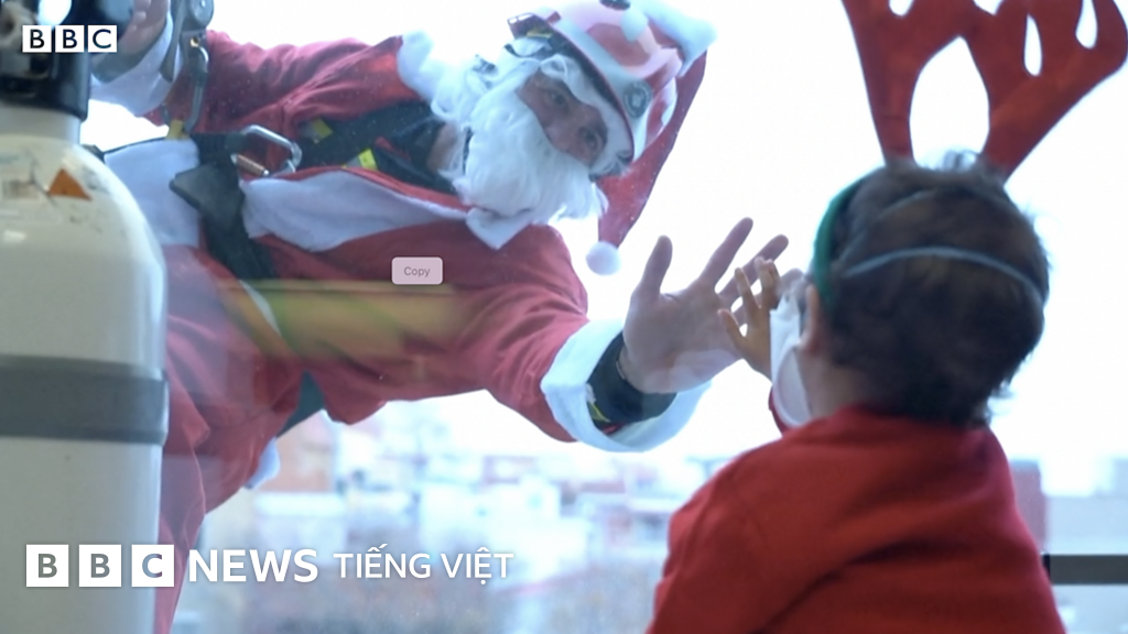 Tại Tây Ban Nha, các lính cứu hoả đã vất vả leo lên tầng cao của bệnh viện để làm ông già Noel, mang đến nụ cười cho các bệnh nhi.