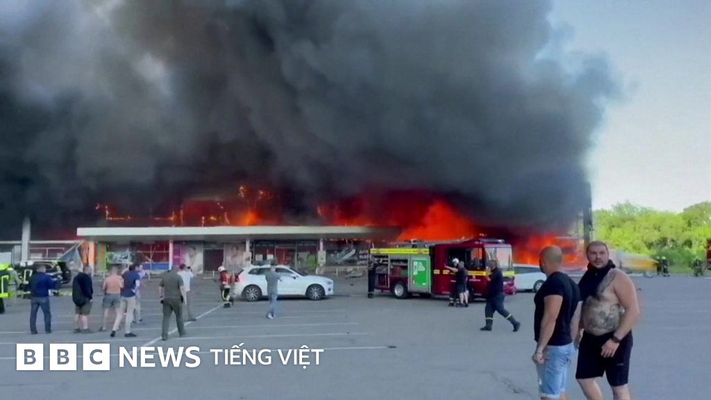 Tên lửa Nga đã bắn trúng một trung tâm thương mại ở thành phố Kremenchuk, miền trung Ukraine vào khoảng 15:50 (12:50 GMT).