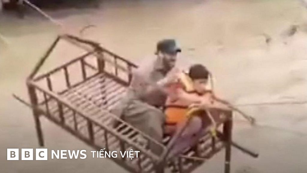 Các tình nguyện viên ở Pakistan đã sử dụng khung giường để cứu người bằng hệ thống ròng rọc trên vùng nước lũ đang hoành hành.