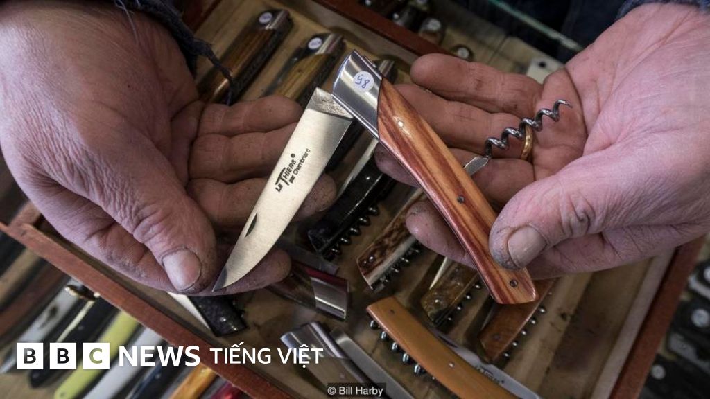 Stephane Renard đã là coutelier (thợ làm dao) tại Thiers được 25 năm. Tôi đứng ngắm ông lắp sáu phần khác nhau vào thành một con dao gấp gần như hoàn chỉnh: hai mảnh chuôi, phần sống chuôi dao, lò xo, và lưỡi dao, rồi thêm một phần nữa dành riêng cho tôi: chốt mở nắp chai.