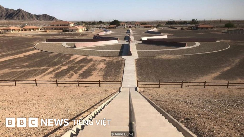 Một đoạn dài 25 bộ của chiếc cầu thang gốc hình xoắn ốc của Tháp Eiffel vươn lên không ăn nhập gì vào bầu trời sa mạc. Một bản sao điêu khắc bằng đồng của 'Cánh tay Thượng đế' của họa sỹ Michelangelo, được lấy ra từ bức vẽ trên trần của Nhà nguyện Chapel ở Vatican, làm thành một chiếc đồng hồ mặt trời.