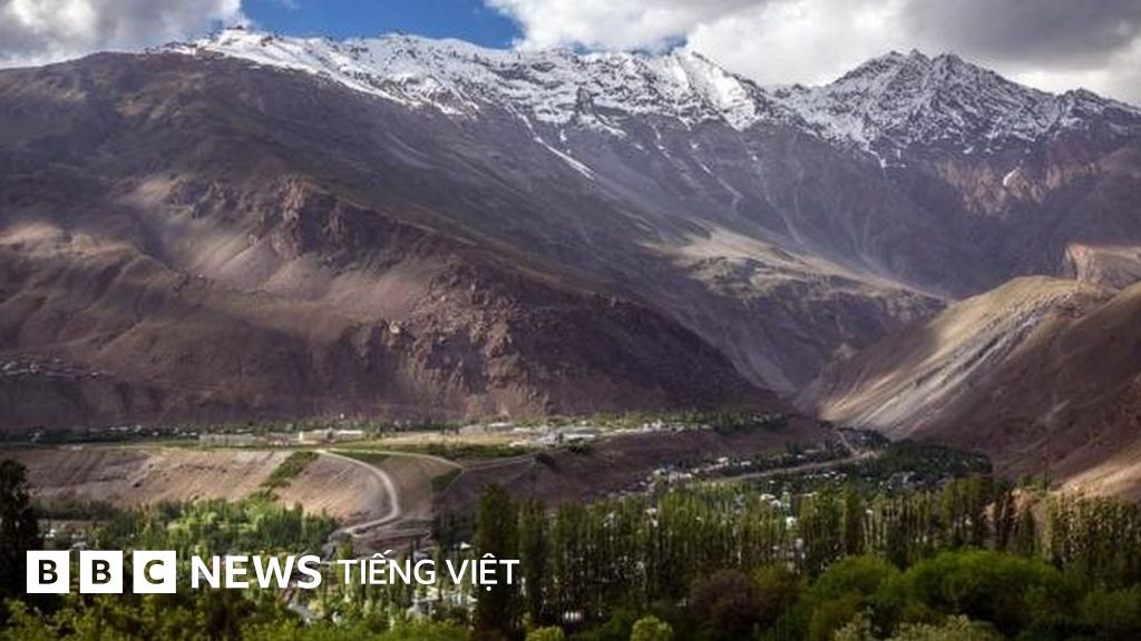 Một người lính Tajikistan đứng trên tàn tích của nơi từng là Pháo đài Khakha trong Thung lũng Wakhan, nhìn về phía Afghanistan nằm cách chỉ vài trăm mét về phía bên kia của dòng sông Panj.