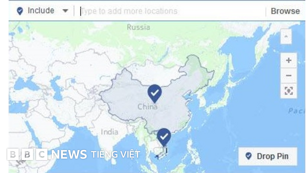 Tuân thủ yêu cầu của Việt Nam, Facebook đã xóa tên Hoàng Sa, Trường Sa trên bản đồ Trung Quốc vốn hiển thị trên một công cụ quảng cáo của công ty này, theo VnExpress.