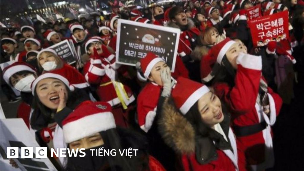 Hàng chục ngàn người, trong đó nhiều người ăn mặc như Ông già Noel, diễu hành qua các đường phố ở Seoul kêu gọi loại ngay Tổng thống Park Geun-hye.