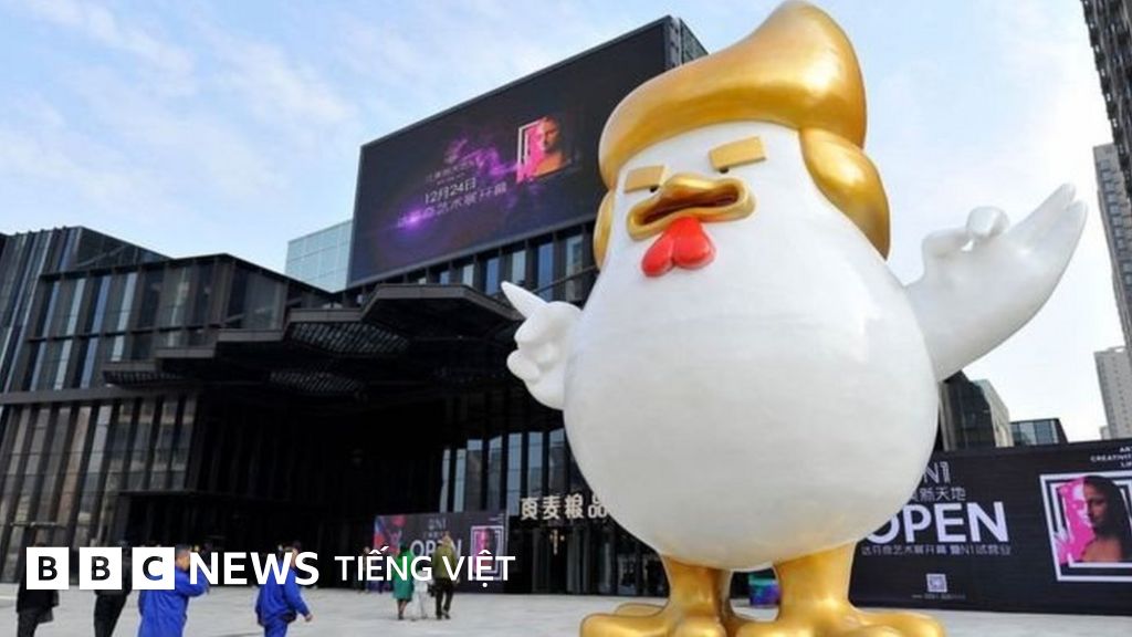Nhân dịp năm con gà đang tới, một bức tượng con gà có cảm hứng từ ông Trump được trưng bày ở một trung tâm mua sắm ở Thái Nguyên, tỉnh Sơn Tây.