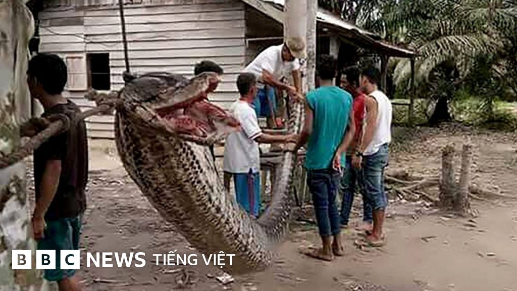 Con trăn khổng lồ đã có kết cục bi thảm sau khi 'thua trận' trước một người dân địa phương ở Indonesia - nó đã bị làm thịt.