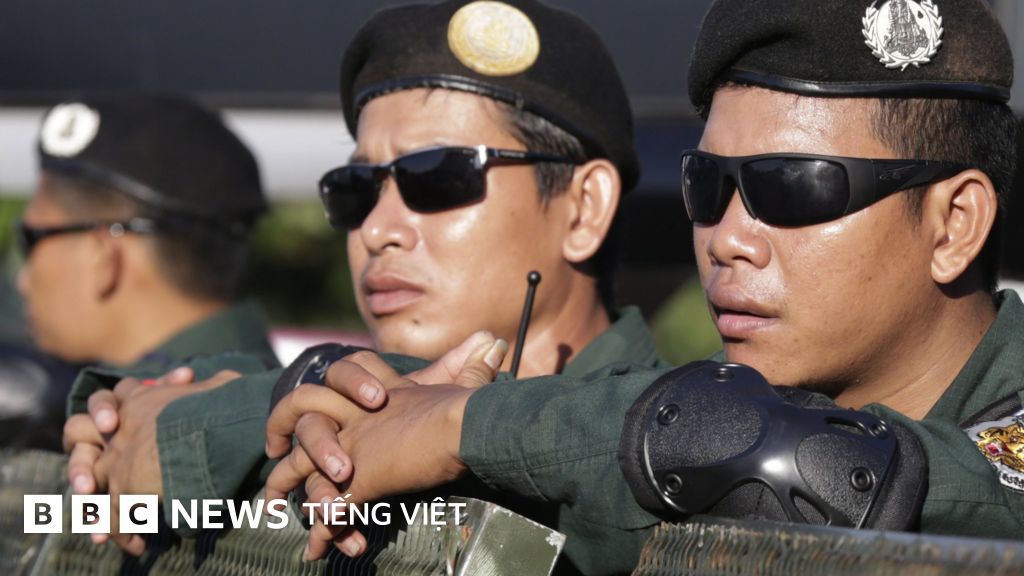 Hôm thứ Năm, an ninh được thắt chặt bên ngoài trụ sở tòa án tại thủ đô Phnom Penh, với cảnh sát chống bạo động được triển khai tại đó.
