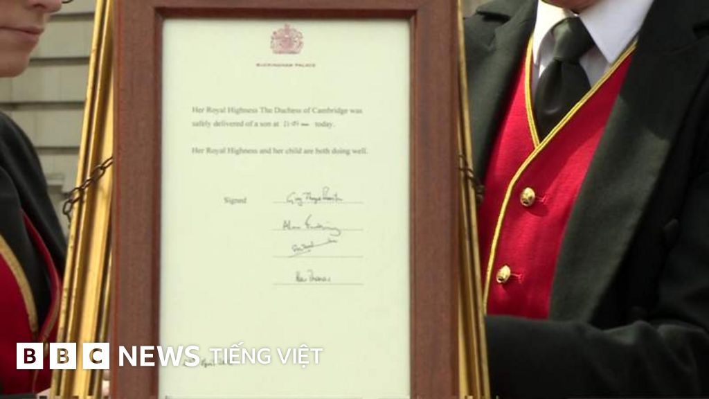 Nữ Công tước xứ Cambridge, vợ hoàng tử Anh William, đã hạ sinh bé trai hôm thứ Hai, xếp thứ năm trong thứ tự kế vị ngôi vua.