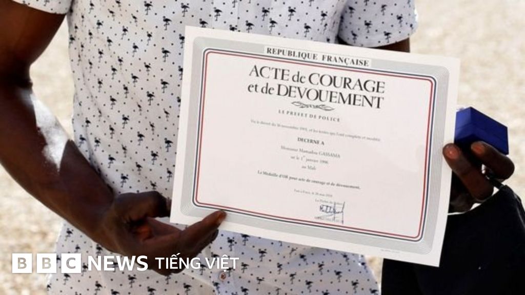 Một người di cư Mali được ca ngợi như một anh hùng sau khi leo ban công để giải cứu một cậu bé đang lơ lửng trên tầng bốn ở Paris.