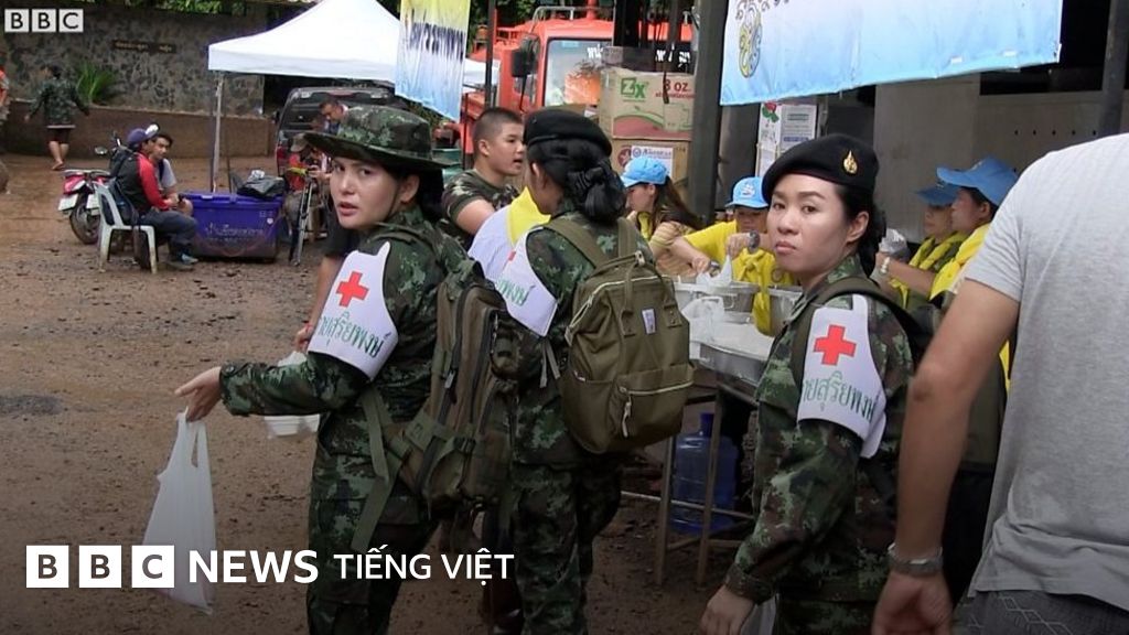 Video do nhóm phóng viên của BBC News Tiếng Việt hiện đang có mặt tại cửa hang Tham Luang thực hiện.