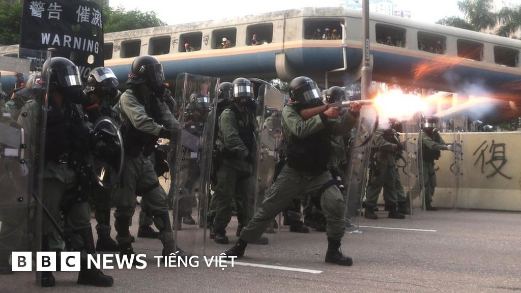Cảnh sát chống bạo động nã hơi cay và dùng dùi cui để tấn công người biểu tình tại Hong Kong.