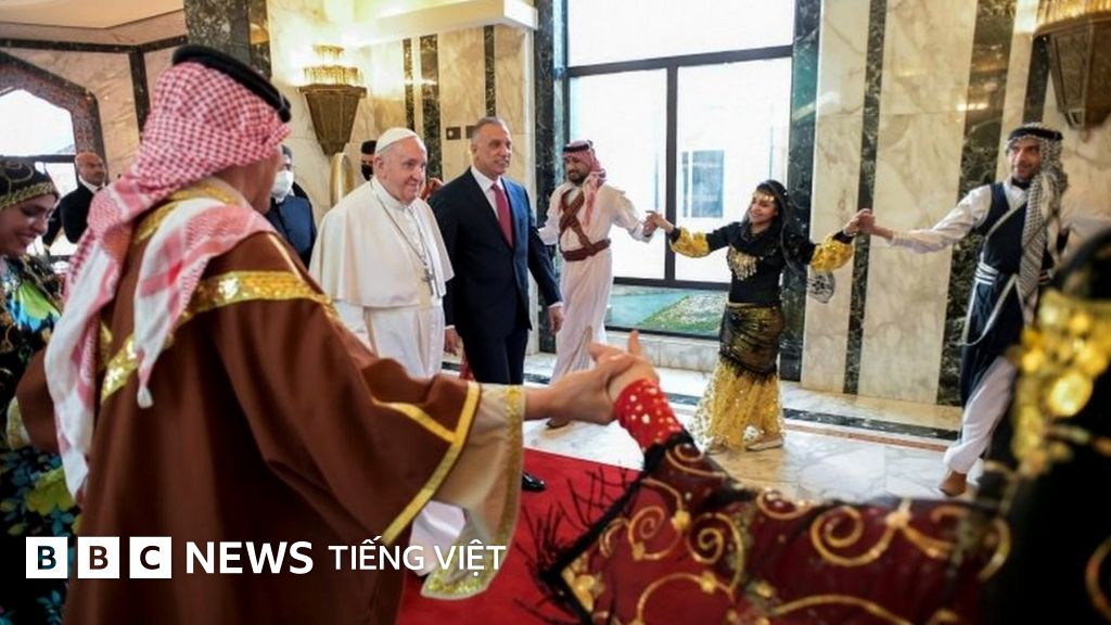 Thủ tướng Iraq Mustafa al-Kadhimi đã chào đón ông tại sân bay, trên thảm đỏ, cùng những người Iraq trong trang phục dân tộc,các bài hát của một dàn hợp xướng hầu như không đeo khẩu trang.