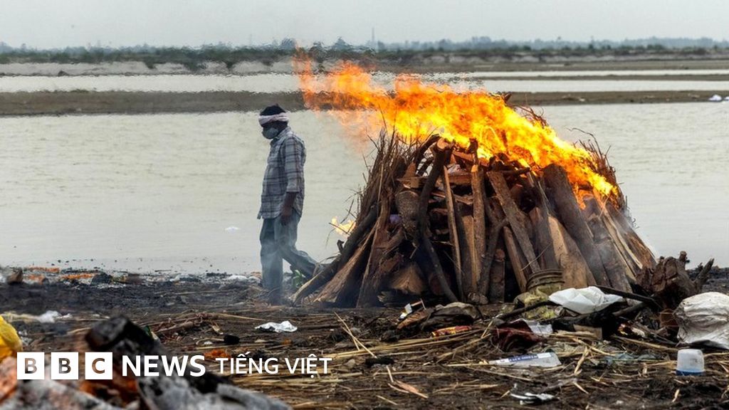 Chụp lại hình ảnh, Nạn nhân của virus corona được hỏa táng bên bờ sông Hằng ở bang Uttar Pradesh, miền bắc Ấn Độ