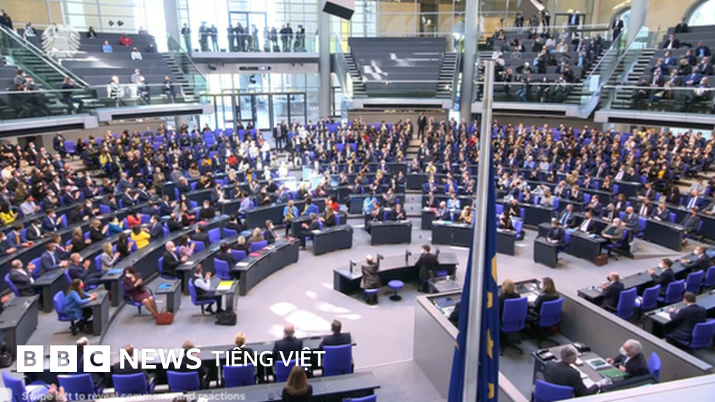 Cùng thời gian ngày Chủ Nhật, ngay trong Quốc hội, các nghị sĩ được triệu về, bỏ cả kỳ nghỉ cuối tuần cho phiên họp khẩn cấp, thông qua luật tăng chi phí quốc phòng của Đức lên hơn 2% GDP.