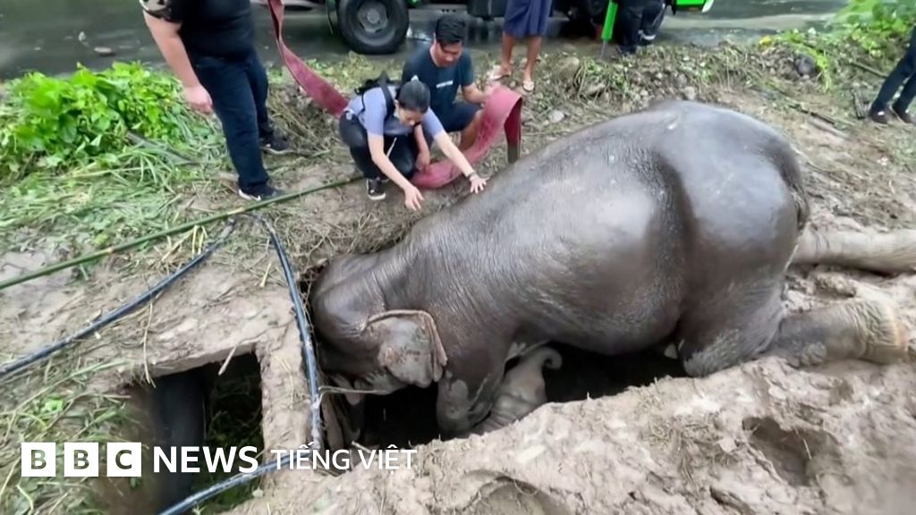 Giải cứu voi mẹ và voi con bị mắc kẹt ở Thái Lan