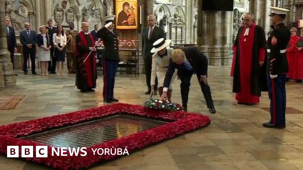 Awọn ibi ti aarẹ Trump a ṣabẹwo si ni Westminister Abbey ati ọdọ Omọba Charles ati aya rẹ.