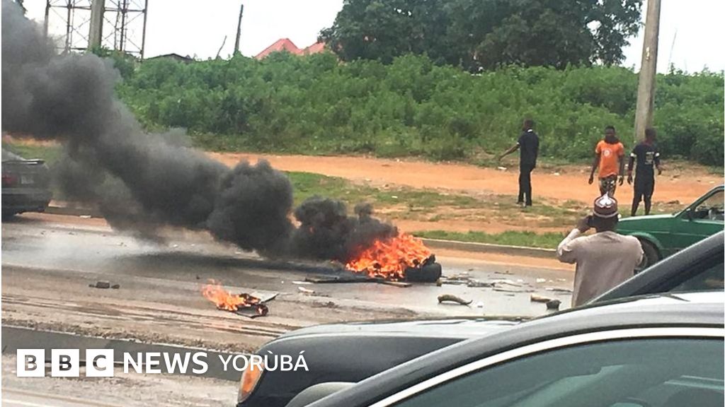 - Àwọn èèyàn to n fẹ̀hónú hàn dáná ṣun iléeṣẹ́ MTN n‘Ibadan