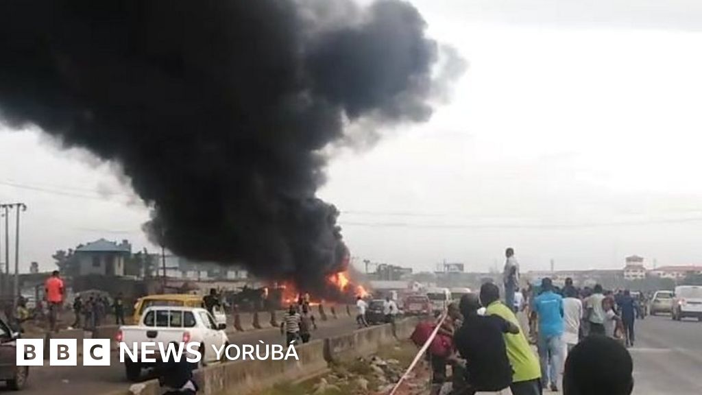 Lagos-Ibadan road: Ọkọ̀ agbépo tó gbiná ní Ibafo dá súnkẹrẹ fàkẹrẹ sílẹ̀