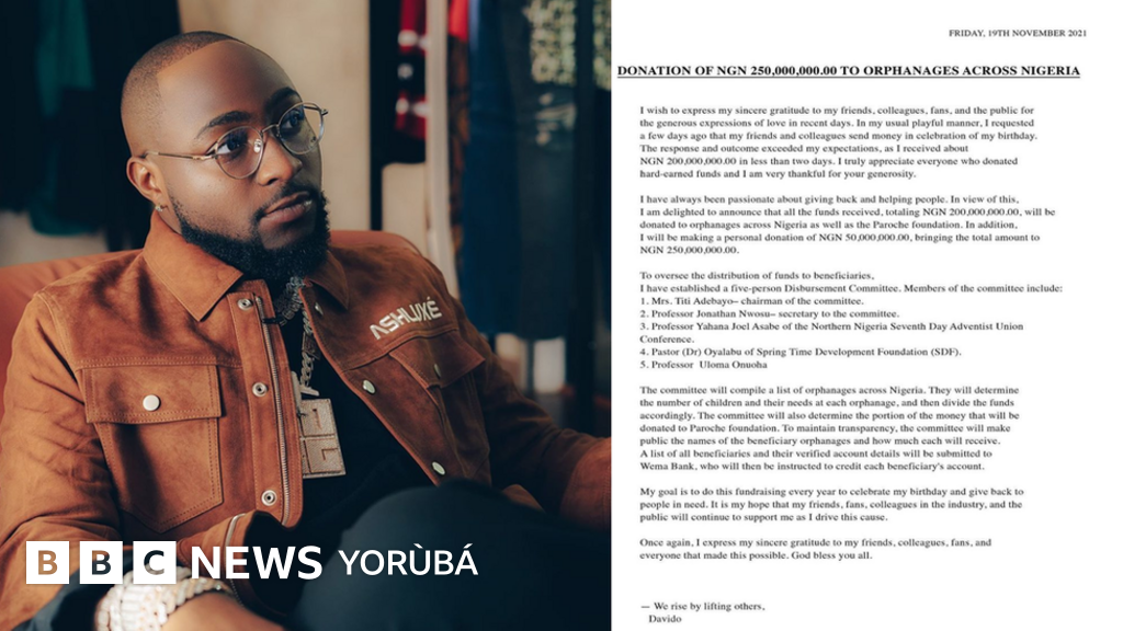Olorin takasufe, David Adeleke, ti ọpọ awọn ololufẹ rẹ mọ si Davido ti kede pe oun yoo pin gbogbo owo to ri gba fun ayẹyẹ ọjọ ibi rẹ si ile awọn ọmọ alainiya kaakiri Naijiria.