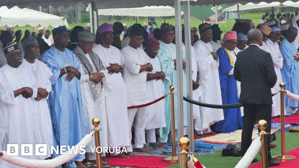 Aarẹ Bọla Ahmed Tinubu darapọ mọ awọn musulumi lati kirun yidi ọdun ileya ni Dodan barracks to wa ni Iloyi nilu Eko lọjọ Aiku.