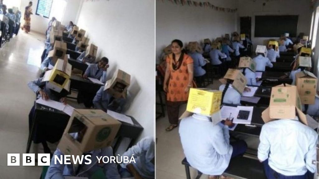Awọn akẹẹkọ naa da paali boju pẹlu iho ni ẹgbẹ kan lati ma se jẹ ki awọn ọmọ naa ji ara wọn wo lasiko idanwo.