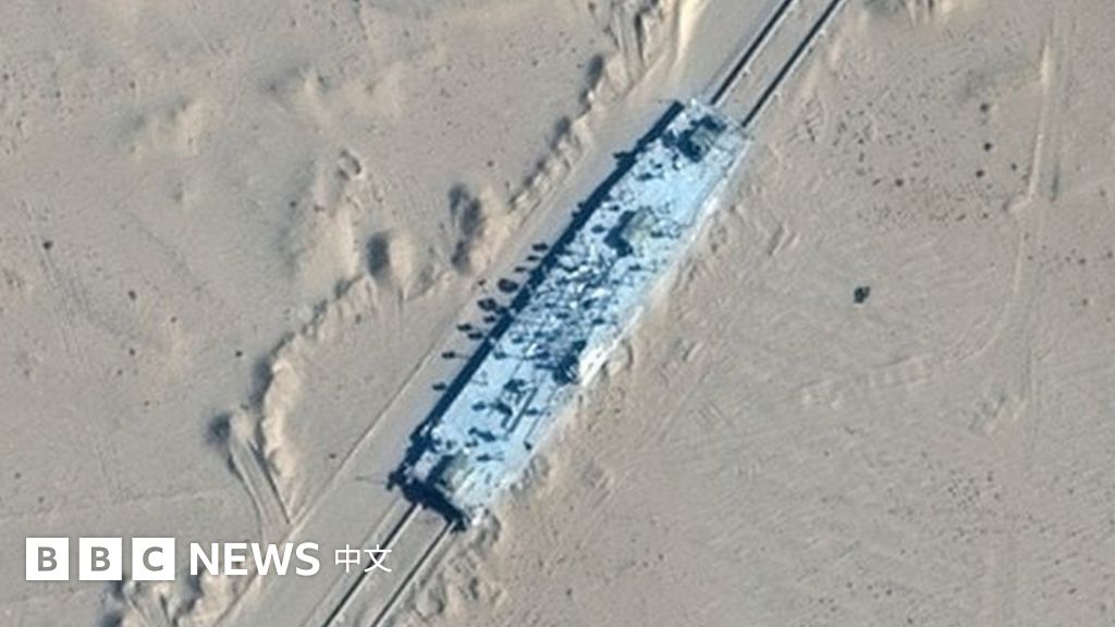 卫星图像似乎显示中国在新疆沙漠建造美军航母模拟移动标靶