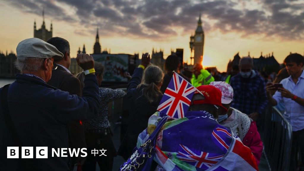 與這個問題相伴的是圖片,人們排長隊等候迎接伊麗莎白二世女王靈柩、瞻仰女王靈柩的照片和視頻。見頭不見尾的隊伍蜿蜒數公里。